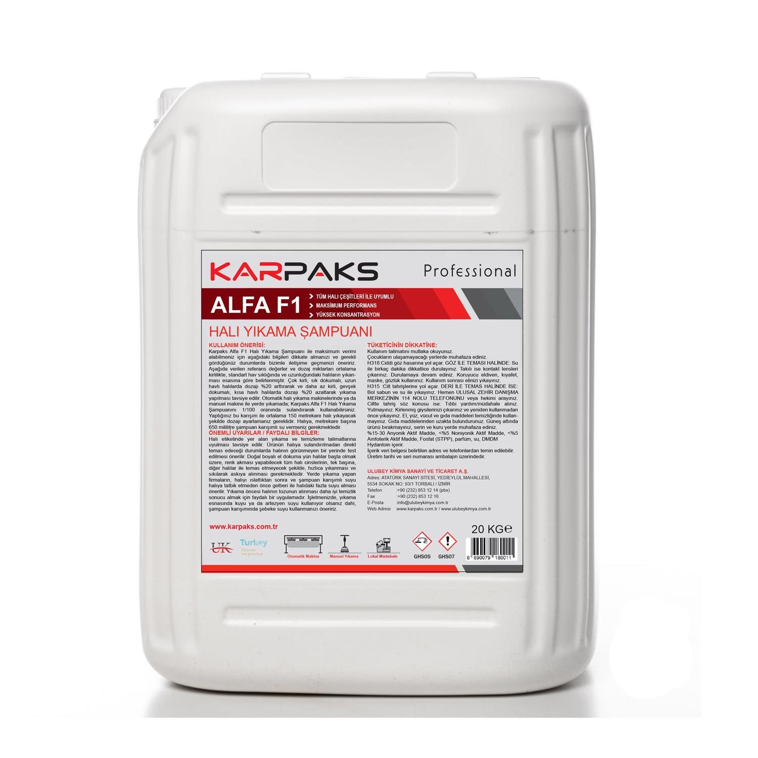 Karpaks Alfa F1 Ultra Halı Yıkama Şampuanı 20kg